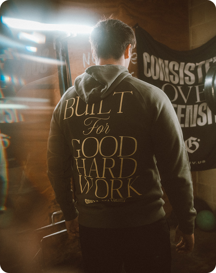 BUILT FOR GOOD HARD WORK. This hoodie features GRIT branding and a straightforward message. For those who take pride in their work ethic.